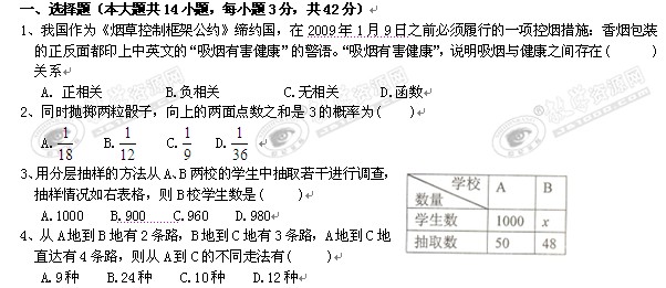 浙江省楚門中學09-10學年高二第二次考試(數(shù)學理)