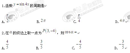 重慶市涪陵實驗中學(xué)高一第一次(4月月考)月考(數(shù)學(xué)理)