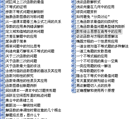 本資料可以同時(shí)適用于高一高二高三的同學(xué)們使用,所選之題均為經(jīng)典題,易錯(cuò)題。這本資料題不多但是我們可以通過(guò)這些題做到舉一反三,避免了高中學(xué)習(xí)的誤區(qū):題海戰(zhàn)術(shù).每一道題后面都有總結(jié)的解題方法思路等,起到畫(huà)龍點(diǎn)睛的作用。本資料共有54個(gè)專(zhuān)題,所以我又把它稱為“五四運(yùn)動(dòng)”當(dāng)我們把本資料完全研究透后,我們也會(huì)取得類(lèi)似與歷史上五四運(yùn)動(dòng)的意義:把差生變?yōu)橹械壬阎械壬優(yōu)閮?yōu)秀生,把優(yōu)秀生變?yōu)榧庾由。最后衷心地祝愿每位同學(xué)能夠取得好成績(jī)!