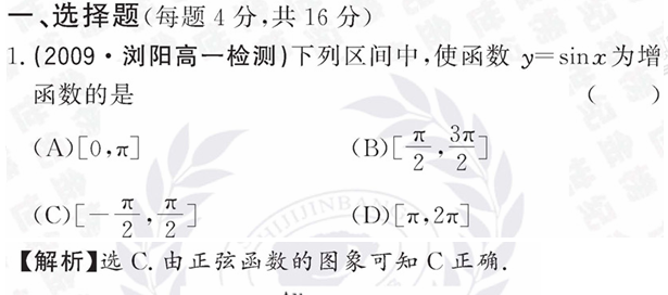 [精練精析]1.4.2.2正弦函數(shù)、余弦函數(shù)的性質(二)(人教A版必修四)