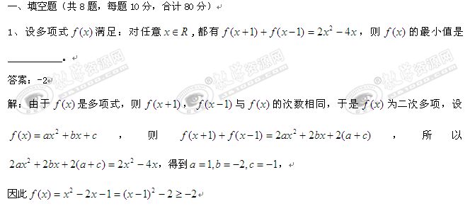 2010年全國(guó)高中數(shù)學(xué)聯(lián)賽江西省預(yù)賽試題解答