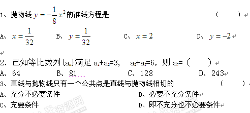 湖南省石齊學(xué)校10-11學(xué)年高二上學(xué)期第三次月考(數(shù)學(xué)文)缺答案