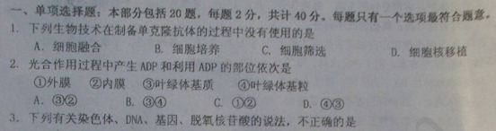 江蘇省盱眙中學(xué)2011屆高三上學(xué)期學(xué)情調(diào)研考試(生物)掃描版