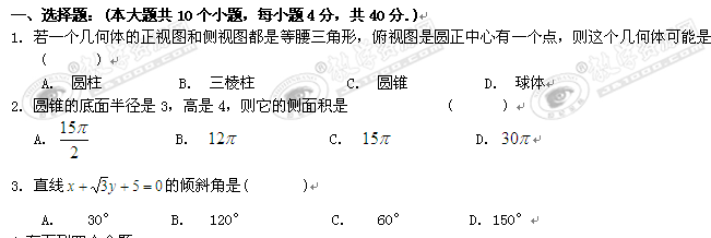 湖南省邵陽(yáng)市二中10-11學(xué)年高一上學(xué)期期末考試(數(shù)學(xué))