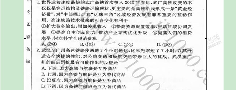 湖南師大附中2011屆高三月考試卷(一)(政治)掃描版