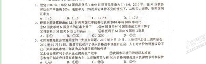 湖南省懷化市2011屆高三上學(xué)期期末教學(xué)質(zhì)量統(tǒng)一檢測(政治)掃描版