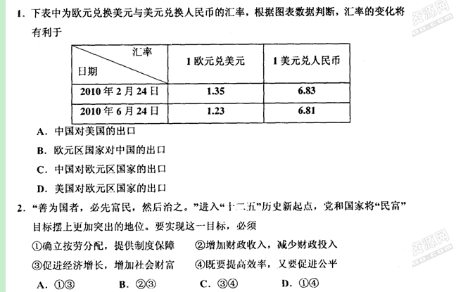 天津市寶坻區(qū)2011年高三質(zhì)量調(diào)查試卷(一)(政治)(掃描版)