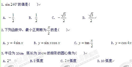 湖南省衡陽(yáng)市八中10-11學(xué)年高一下學(xué)期期中考試(數(shù)學(xué))