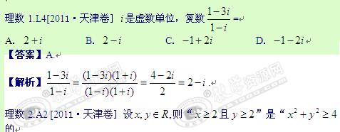 2011年普通高等學(xué)校招生全國統(tǒng)一考試天津卷(數(shù)學(xué)理)解析版缺解答題解析