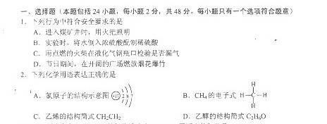 云南省2011年6月普通高中學(xué)業(yè)水平考試(化學(xué))(掃描版無答案)