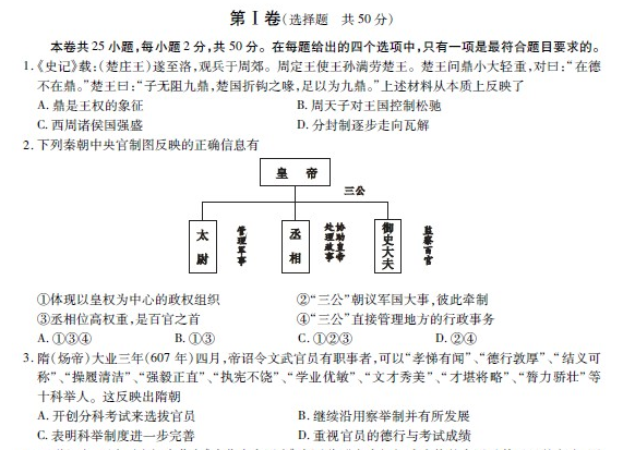 重慶市2026屆高三上學(xué)期9月適應(yīng)性月考二(歷史 解析版)