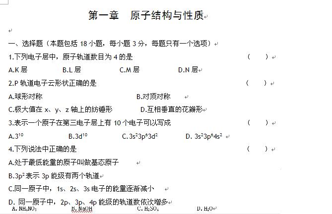 化學(xué):第一章《原子結(jié)構(gòu)與性質(zhì)》測試(新人教版選修3)