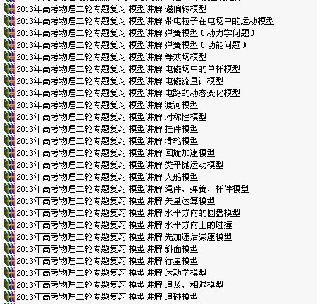 2013年高考物理二輪專題復(fù)習(xí) 模型講解全套【打包】