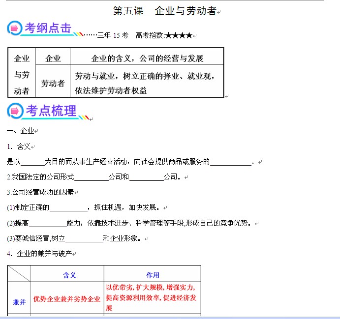 【jb1000一輪精品系列】2014高考復(fù)習(xí)教案:1.2.5 企業(yè)與勞動者