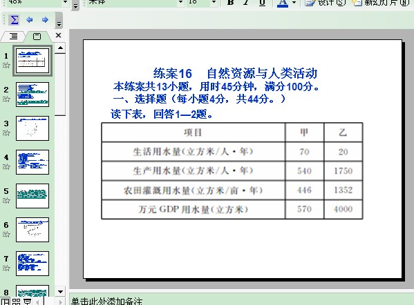 2014高考一輪復(fù)習(xí) 練案 16自然資源與人類活動(dòng)