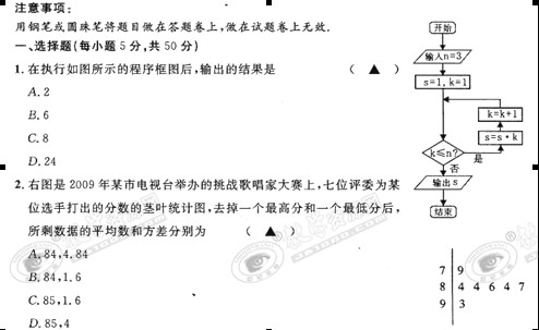 浙江省湖州市09-10學(xué)年高二上學(xué)期期末考試(數(shù)學(xué)理)掃描版