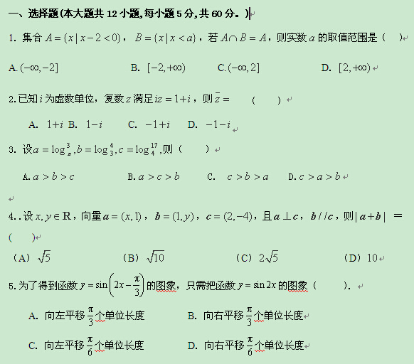 西藏林芝地區(qū)第二高級中學(xué)2015屆高三第五次月考(數(shù)學(xué)文)