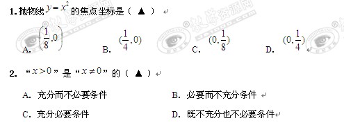 浙江省溫州市09-10學(xué)年高二下學(xué)期八校返校聯(lián)考(數(shù)學(xué)文)