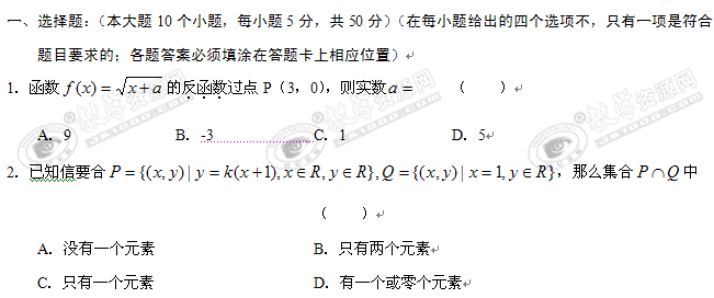 重慶市重慶一中09-10學(xué)年高三上學(xué)期調(diào)研測(cè)試(數(shù)學(xué)理)
