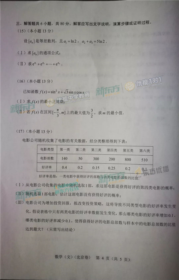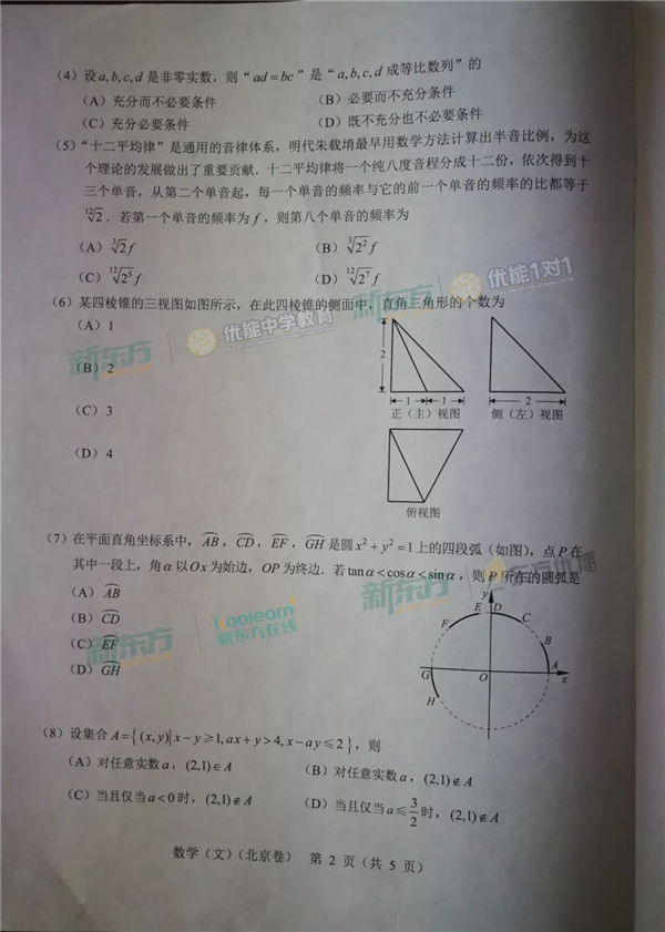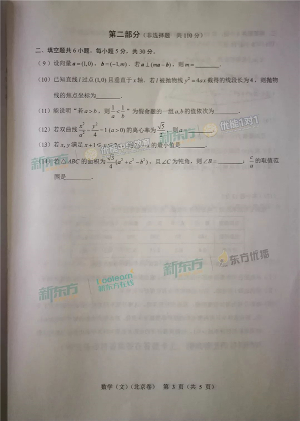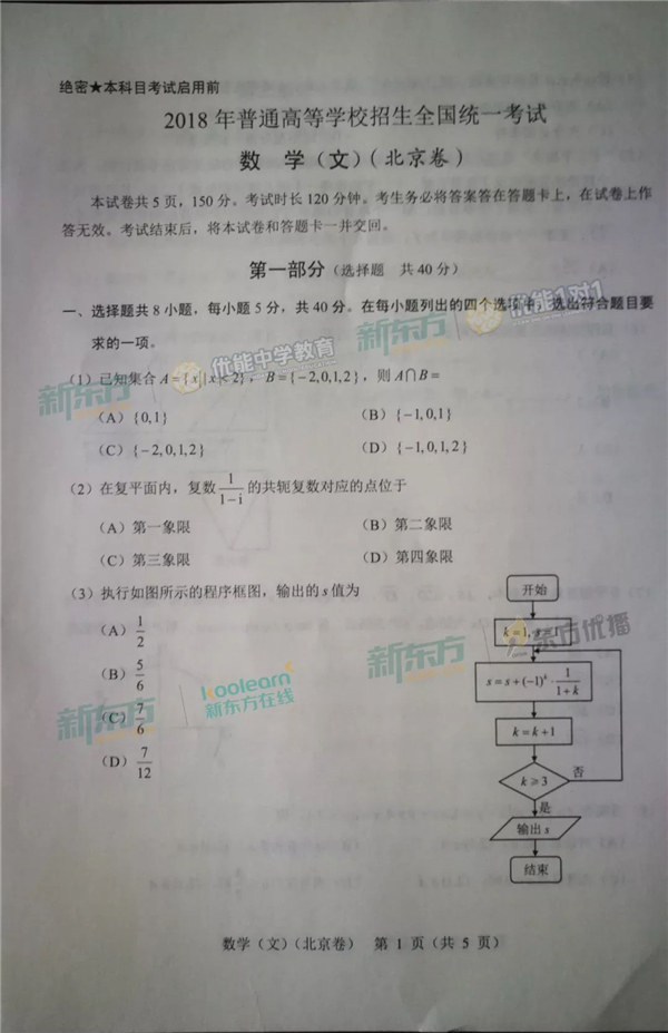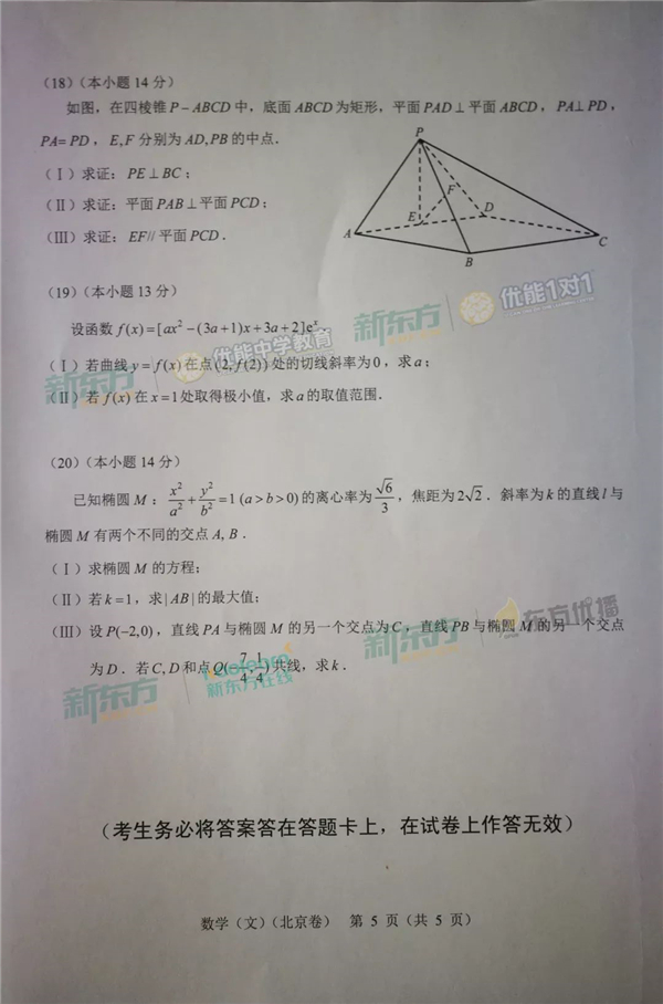 2018年普通高等學(xué)校招生全國統(tǒng)一考試數(shù)學(xué)試題(北京卷 文 無答案)
