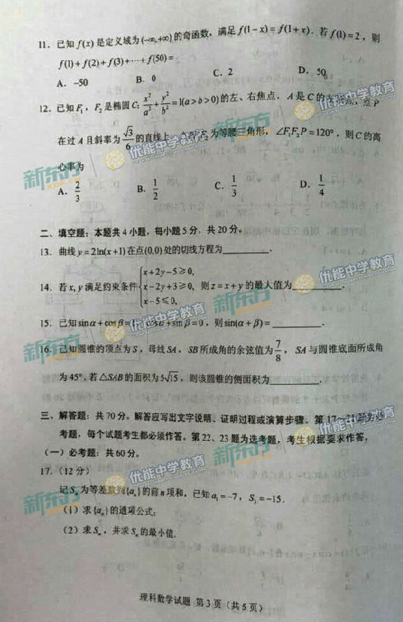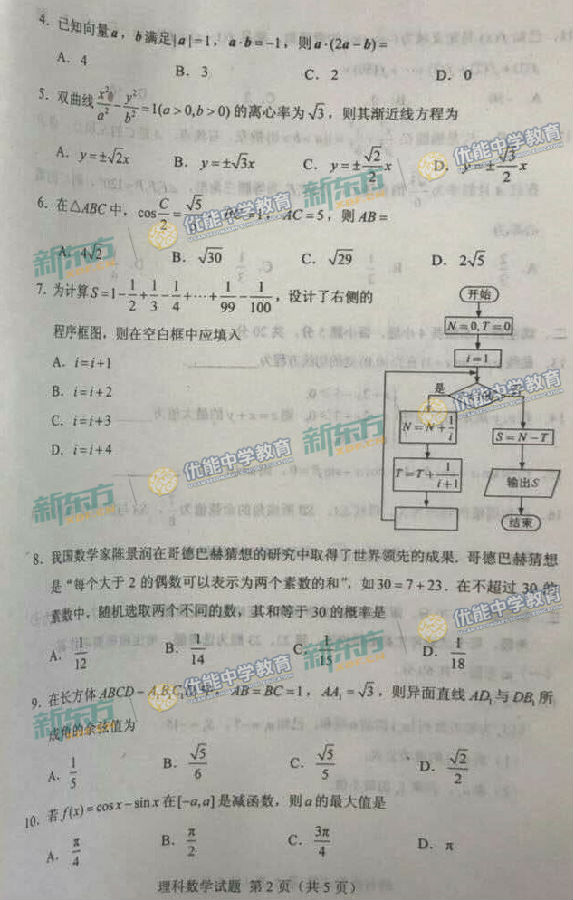 2018年普通高等學(xué)校招生全國(guó)統(tǒng)一考試數(shù)學(xué)試題(全國(guó)2卷 理 無答案)