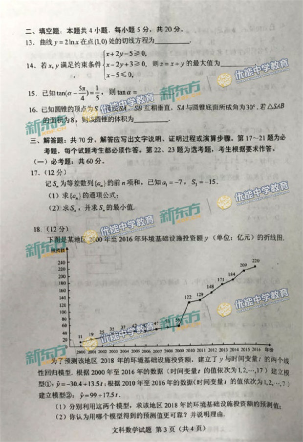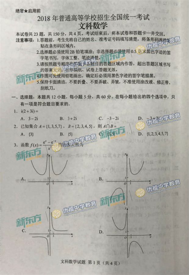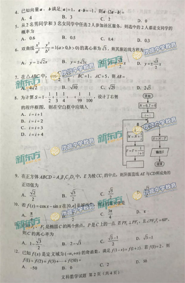 2018年普通高等學(xué)校招生全國(guó)統(tǒng)一考試數(shù)學(xué)試題(全國(guó)2卷 文 無(wú)答案)